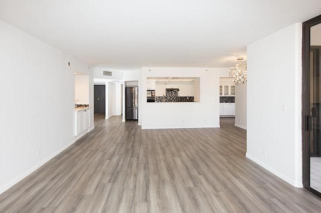 Park Towers offer 180 units on 18 floors with two and three bedroom layouts ranging from 1,260 square feet up to 1,880 square feet. They feature floor to ceiling windows, large living rooms with wet bar, kitchens with breakfast bar and in-unit laundry. Many of the units have been upgraded with hardwood floors, granite countertops and stainless steel appliances.