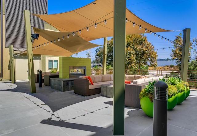 - Outdoor fireplace at deck level complemented with multiple seating and gathering areas