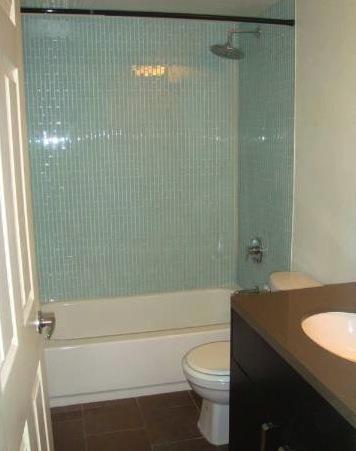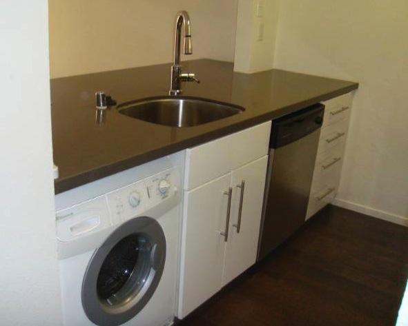 The Rob Clark Condominiums offers 105 units on 4 floors with studio, one and two bedroom plans ranging from over 500 square feet up to almost 1,000 square feet. Interiors feature wood floors, kitchens with stainless appliances and Caesarstone counters. Bathrooms have Wenge stained vanities, Quartz counters and glass tile shower and tub surrounds.