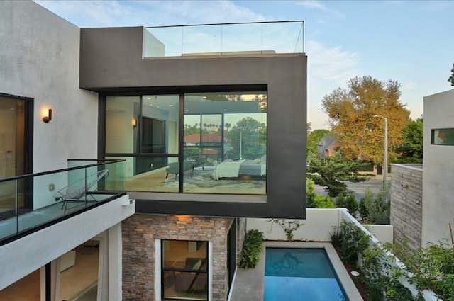 Curated with exquisite designer details creating a warm and inviting environment to call home. Amazing 2-story walls of glass highlight the den and open floor plans with sunlight and displaying the glistening pool and spa. The spacious living rooms are complimented by a fireplace adorned with riddling racks for wine storage. The custom kitchens feature a large island, pantry, Italian cabinetry by Linea Quattro and Miele appliances, all of which overlook the dining area and glass doors that open onto the exterior patio. The lower level office opens onto the pool and creates a serene workplace or study. There are glass staircases to the upper level with a loft and private deck. The master suites offer views, a fireplace, luxurious bath and custom closets. The spacious secondary bedrooms are all en-suite. Enjoy sunsets and entertain in style on the rooftop decks with incredible views of the City and Hollywood Hills.