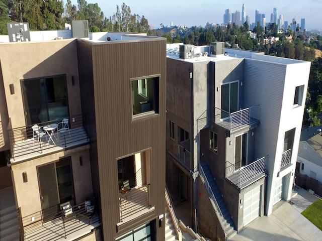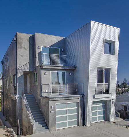 Vantage Point, built in 2017, consists of four luxury multi-level townhomes located at the top of Lucretia Avenue in the highly sought-after neighborhood of Echo Park. Standing 3-stories tall, these homes offer panoramic views of Downtown Los Angeles and the Wilshire District from each of the 5 decks.