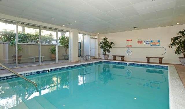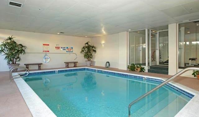 Amenities include controlled access, indoor heated pool, sauna, gym, secure resident and guest parking.