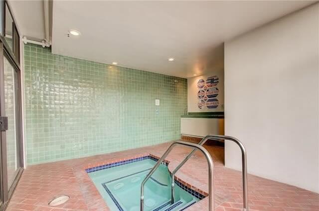 Residents enjoy controlled access to the building along with serene amenities, including a sun-drenched outdoor pool and a peaceful indoor hot tub—ideal for relaxing in any season.