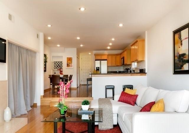 This intimate community features just 8 residences spread across 3 floors, offering spacious two-bedroom layouts that range from approximately 1,300 to 1,700 square feet. The interiors are designed to maximize space and light, with open-concept living and dining areas that are brightened by large windows and sliding glass doors. Many units feature elegant finishes, including hardwood floors, recessed lighting, and fireplaces that serve as the centerpiece of the living room.