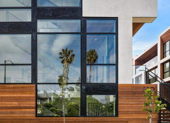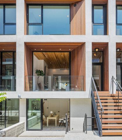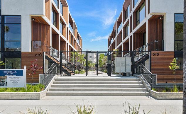 Windsor Row Luxury Townhomes, by Electric Bowery Architects, is a gated courtyard formed by two strikingly peerless structures creating this community of architectural residences. An abstract stream meanders along the axis of the landscaped courtyard. Located in the Windsor Square neighborhood which knits Hancock Park, the urbanity, nightlife, and diversity of K-town, with the leafy grace of Windsor Square and lively shops of Larchmont Village.
